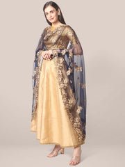 Navy Blue Embroidered Net Dupatta with Cutwork