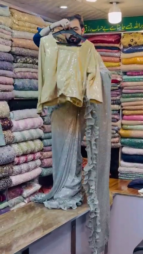+ Free Shipping- This ready to wear saree comes with ready pleats, a belt with hooks and doris. The belt also contains small elastics. This saree is comfortable for waist sizes ranging from 26 inches to 44 inches. The saree blouse is stitched.
