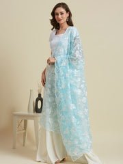 - This beautiful organza dupatta is adorned with delicate embroidered butterflies.