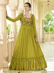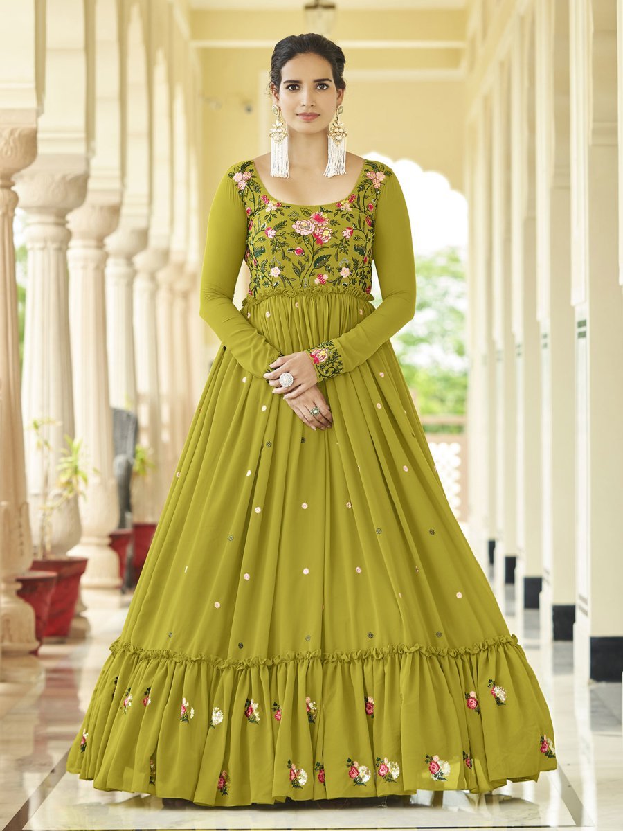 + Free ShippingBuy outstanding green georgette wedding gown online at best price from Inddus. This stunning gown suit is the perfect wear for upcoming diwali festival celebration.
