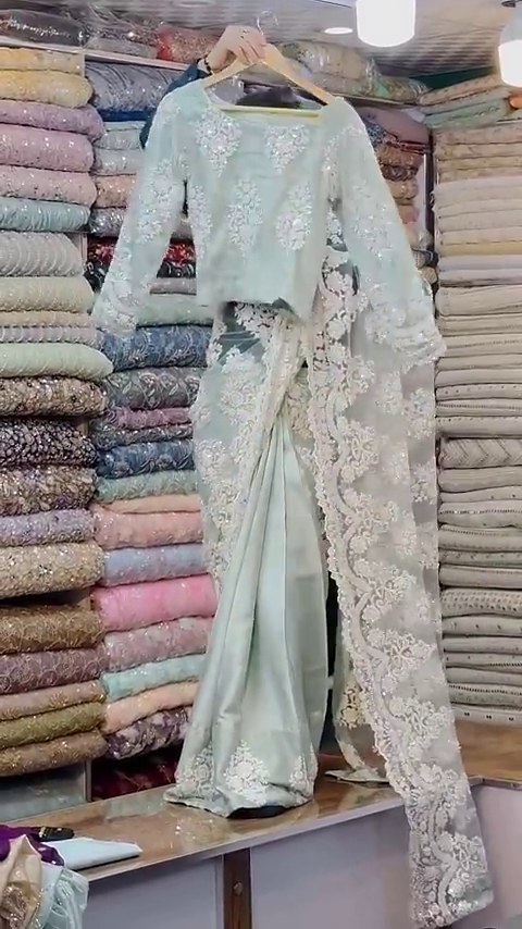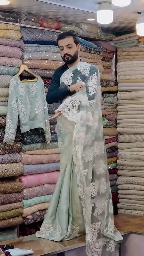 The blouse worn by the model might be for modelling purpose only. Check the image of the blouse piece to understand how the actual blouse piece looks like.