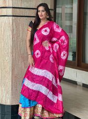 + Free ShippingAdorn yourself with this very fine Bandhani dupatta on soft Modal Silk fabric. Wrap around this astounding piece and grace your favorite occasion.